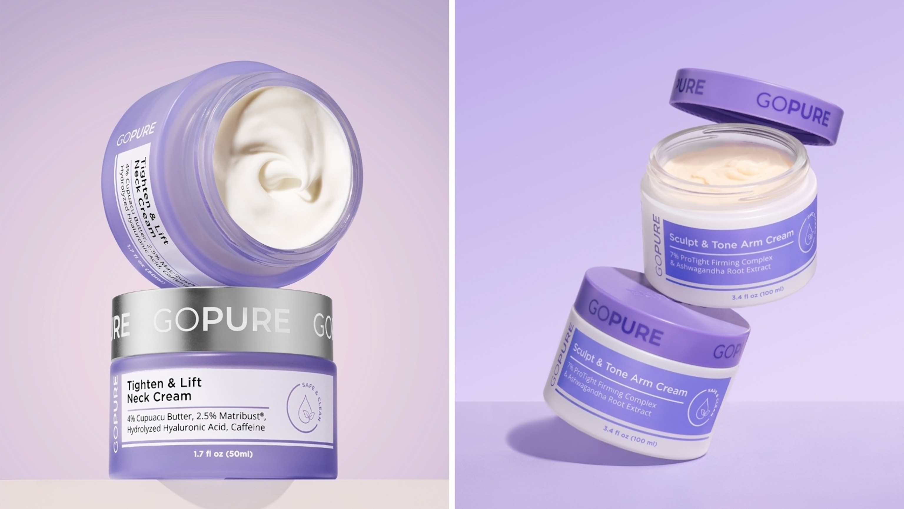 Get real results backed by clinically tested, active ingredients at proven percentages. GOPURE is a husband and wife-owned company out of southern California offering clean, cruelty free, effective formulas at accessible prices. Over 2 million jars of the brand's Tighten & Lift Neck Cream have been sold. Designed to do what face cream can't, smoothing the look of lines and lifting the look of sagging skin on the neck, powered by a proprietary firming complex that features smoothing caffeine and tightening tamarind seed. While most body creams only focus on hydration, the Sculpt & Tone Arm Cream firms and tightens the look of sagging, loose skin on the arms. The proprietary ProTight Firming Complex features toning lotus leaf extract and firming AI-powered peptides. Tighten & Smooth Belly Cream supports the skin's natural collagen levels to help give skin a more elastic look. Limit two per product. Shipping is $4.99 or free over $49.