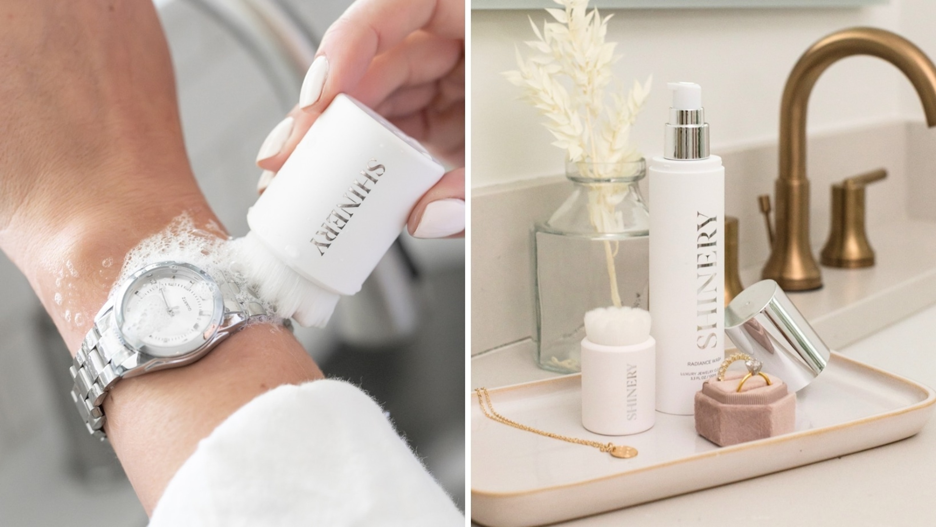 Take your jewelry from dirty and dull to sparkling and shining. Shinery is a jewelry cleaning company with products that are all easy-to-use and safe on all metals and gemstones from fashion jewelry to fine jewelry. The Jewelry Wash is formulated with plant-derived surfactants that remove dirt, oil and beauty buildup from your jewelry and wash them away, leaving you with brilliant and bright jewelry that looks like new, plus it cleanses and nourishes hands, too! The Radiance Brush has bristles that are specifically contoured to maximize cleaning power and are made of a carefully selected material that is gentle and non-abrasive. Radiance Towelettes keep jewelry sparkling while traveling. The Radiance Duo includes both the Radiance Brush and the Jewelry Wash, everything you need for stunning, sparkling jewelry, whether it's a quick, daily shine or a deep, thorough clean. Limit 10 per product. Shipping is $4.95 or free over $50.