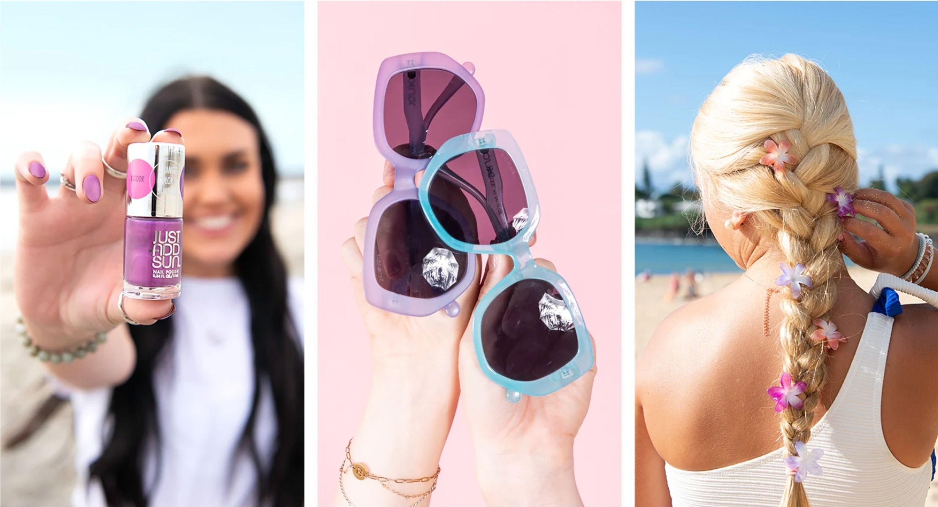Accessorize with styles that change color in the sun. Del Sol is a fun-in-the-sun company with a proprietary Spectrachrome technology, formerly explored by NASA for its space program, that makes its products change color with sunlight. Choose fun sunnies, vibrant nail polishes and hair clips.