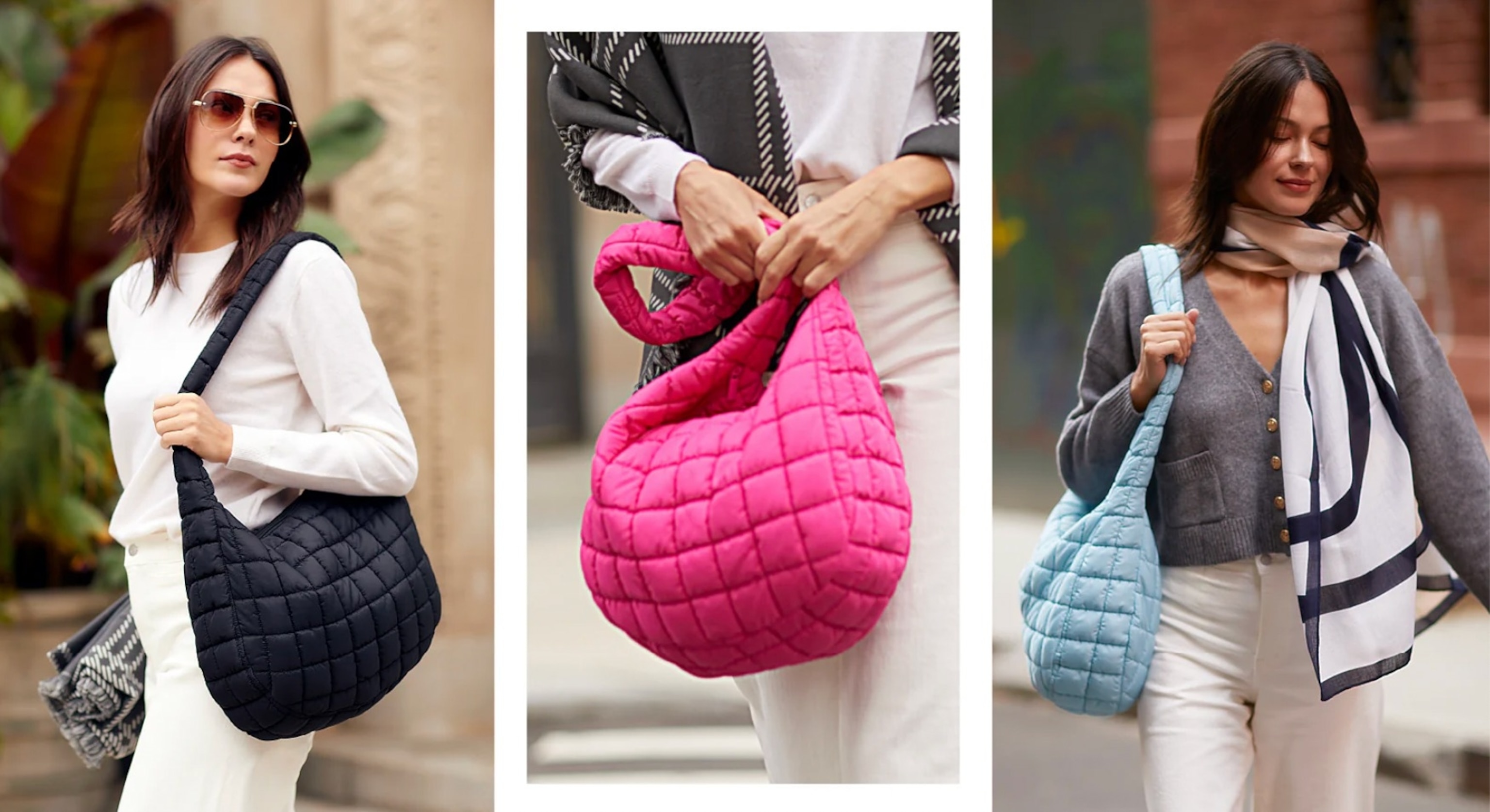 Carry all of your essentials with a lightweight, packable design. The soft, quilted Cloud bag is a traveler's dream! It's large enough to carry all of your stuff on the go yet folds up compactly to easily fit into your suitcase without extra bulk. Wear it over your shoulder or as a crossbody for even more convenience.