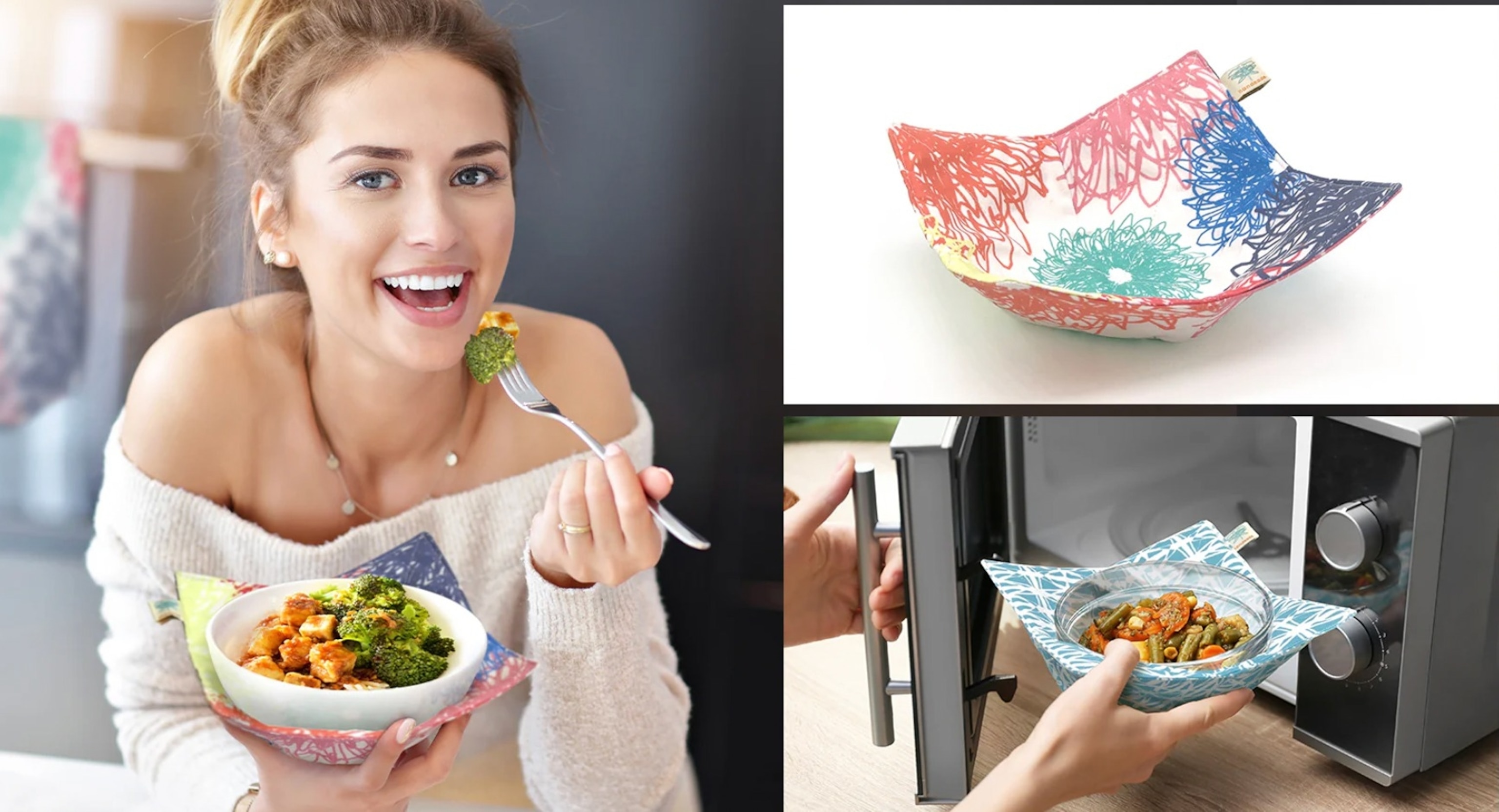 Safely and conveniently heat and serve hot dishes with the Shawn Sargent Designs microwave bowl holders. Simply place them in the microwave under any bowl or plate -- no more burnt hands when it's time to remove. Featuring fresh, original patterns with a slightly retro, quirky vibe, these products are made by hand using eco-friendly, sustainable materials. Offered in singles and two-packs.