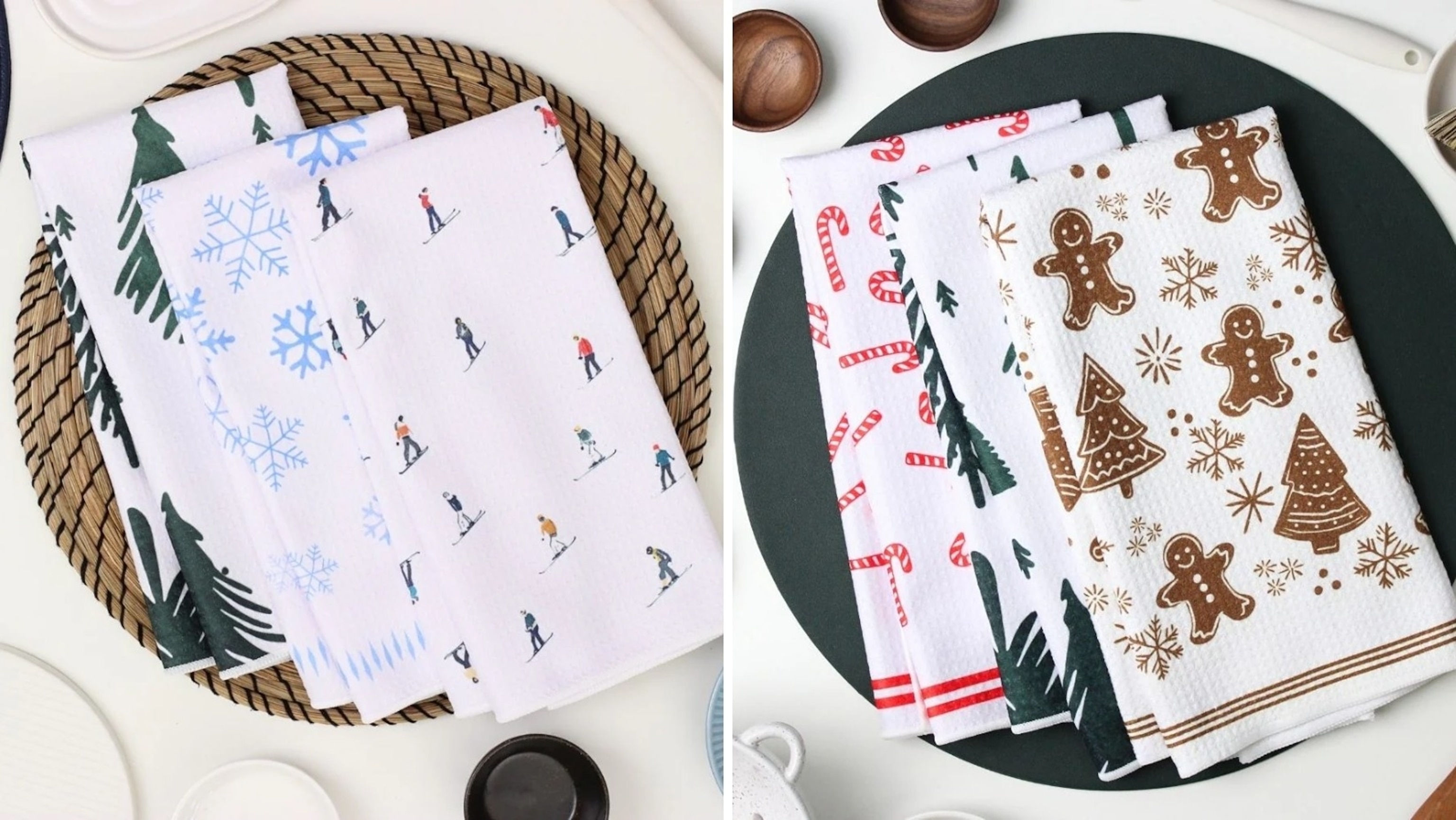 Feel good about your choices in the kitchen. Render Goods' modern dish towels are made from recycled water bottles and absorb up to five times their weight in water. Stain-resistant, these towels feature vibrant prints that won't peel or crack. These are machine-washable for easy cleaning. Choose a large selection of patterns. Also included in this assortment are the pack of four cloth napkins in a variety of patterns. Shipping is $4.99 or free over $75.