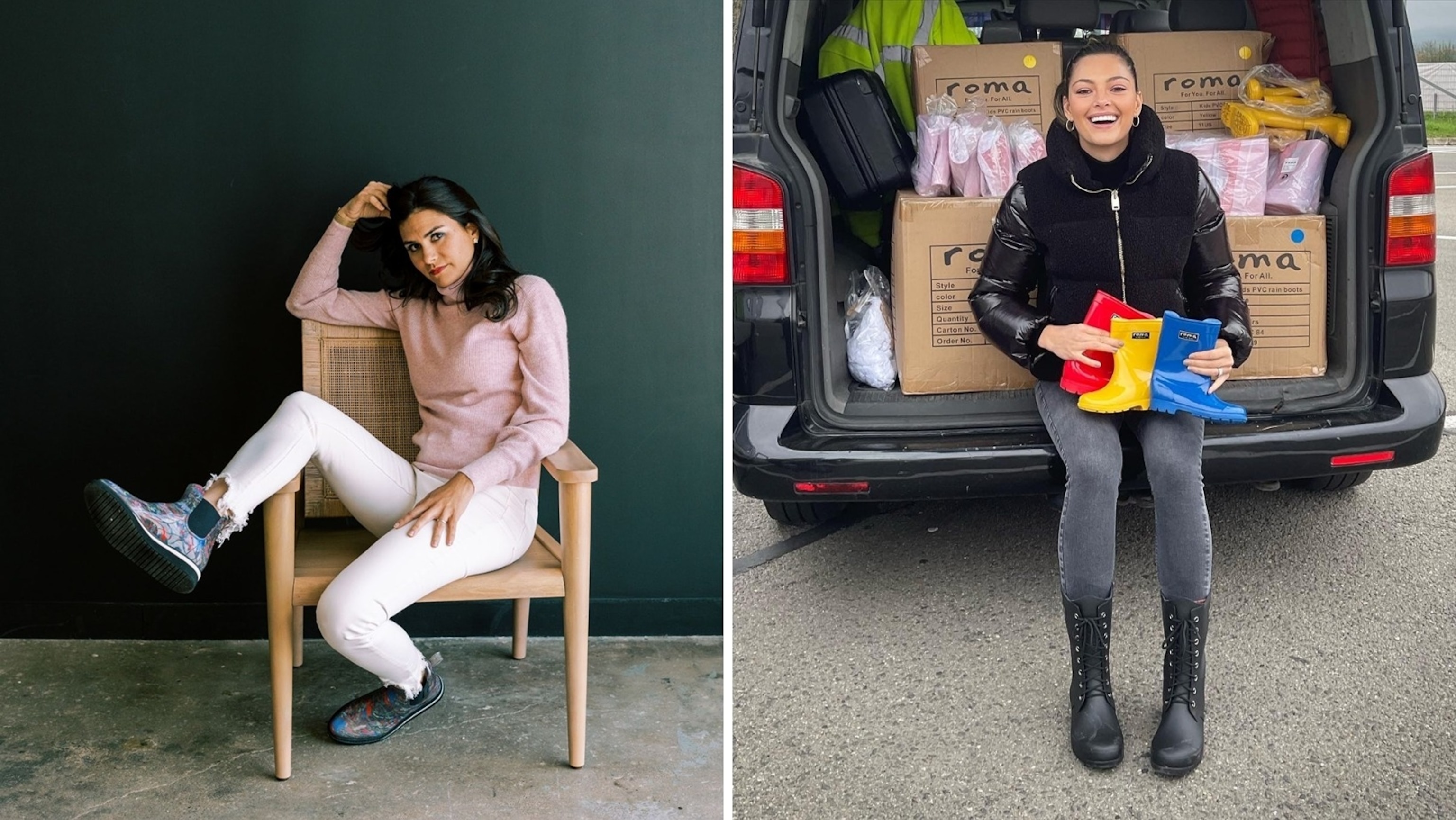 Take on any weather in style. Roma Boots was founded by Romanian-born Samuel Bistrian, who was raised in extreme poverty under communism. He received his first rain boots (hand-me-downs) at the age of 6, which later became the inspiration for Roma. Inspired and encouraged by Blake Mycoskie (founder of TOMS), Roma was born. In 15 years, the one-for-one model has donated $12 million worth of boots. Roma Boots are natural rubber and completely waterproof, designed for comfort and longevity. Choose from a variety of women's styles. Shipping is $4.95 or free over $100.