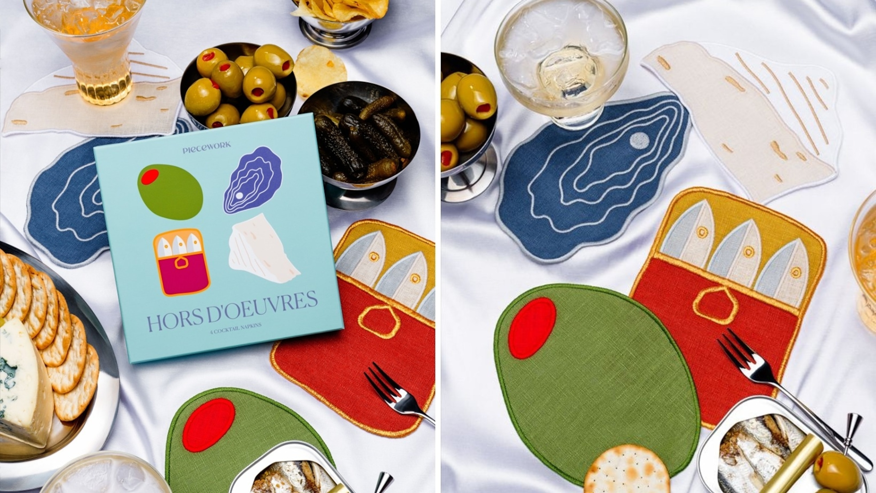 Spark conversation with bold, whimsical designs. Piecework Puzzles' unique, 100% linen cocktail napkins instantly elevate any table or bar. Each set features distinctive themes and designs that mix style with function, embroidered with rich color, so you can turn a casual drink into an occasion. Encourage connection, creativity and togetherness with beautiful puzzles. Piecework Puzzles are made with thick, matte-finished pieces from sustainably sourced recycled paper. The four in this assortment each offer a themed world to explore, complete with titles printed on the side and curated playlists to set the mood. Limit eight per order. Shipping is $4.99.
