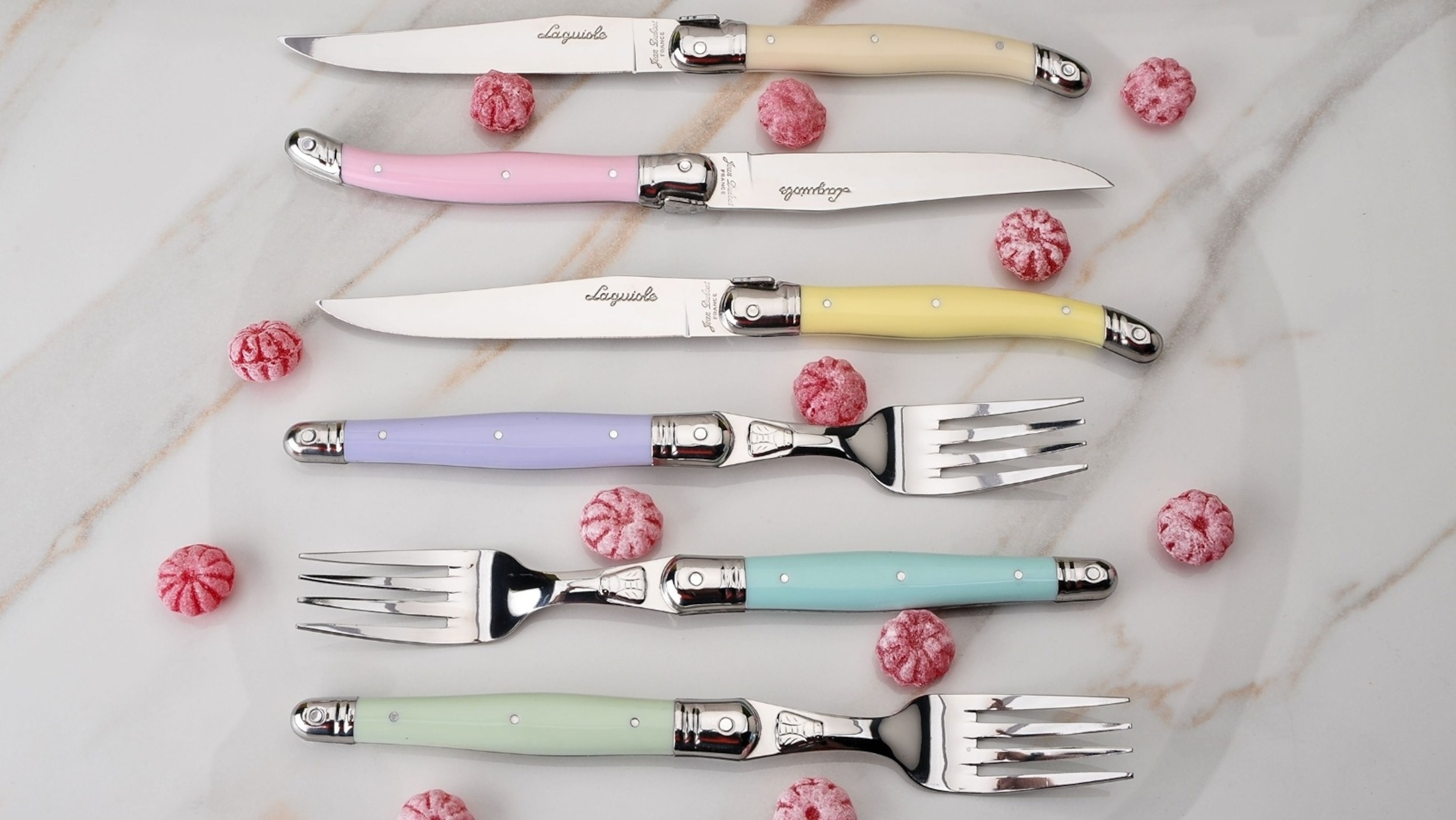 Bring authentic French craftsmanship to your table with The French Farm. Experience the timeless allure of the Laguiole knife, crafted with passion by the esteemed Jean Dubost family since 1920. Its rich history, including the bee emblem from Napoleon Bonaparte's seal, adds a touch of legend. Effortlessly glide through food with these expertly crafted knives, in a block or tray, made in France, complete with a certificate of authenticity, ensuring a true Laguiole experience. Meticulously crafted to harmonize functionality and style, the Laguiole steak knives and flatware exquisite sets raise the bar for culinary excellence. Choose from an enchanting array of captivating colors and set sizes, including elegant ivory, sleek black, sophisticated stainless steel, vibrant red and more. Conveniently nestled within a sleek wooden tray, each piece is thoughtfully organized for effortless storage. Limit four per order. Shipping is $6.99.
