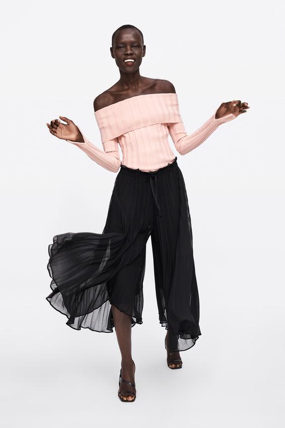 Mixing the punchy pearl details with a softer element, such as this off-the-shoulder sweater, strikes the perfect balance.