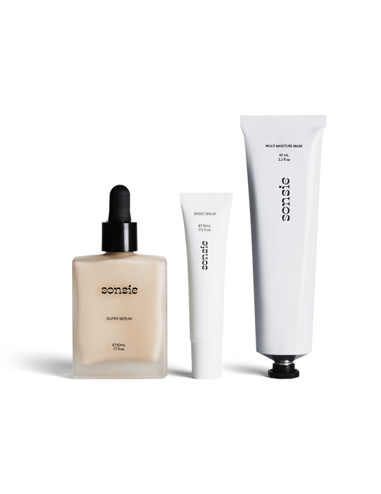 Sonsie's current offerings are a multipurpose moisturizing mask, a serum, and a balm with a glossy finish.