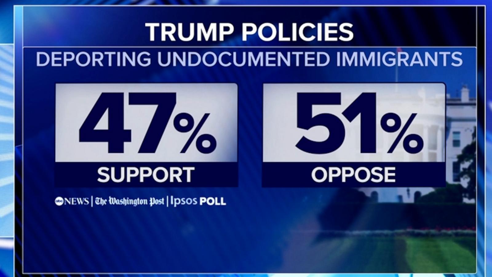 Americans hold mixed views on President Donald Trump's immigration policies, according to a ABC News/Washington Post/Ipsos poll.