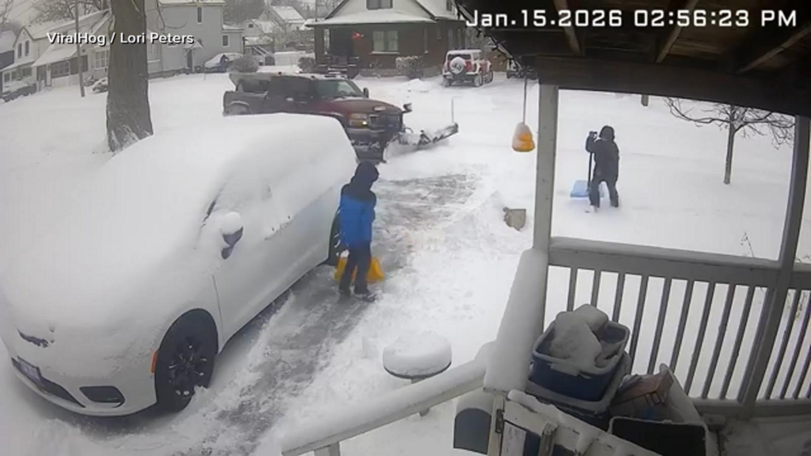 VIDEO: Plow driver helps boys clear driveway