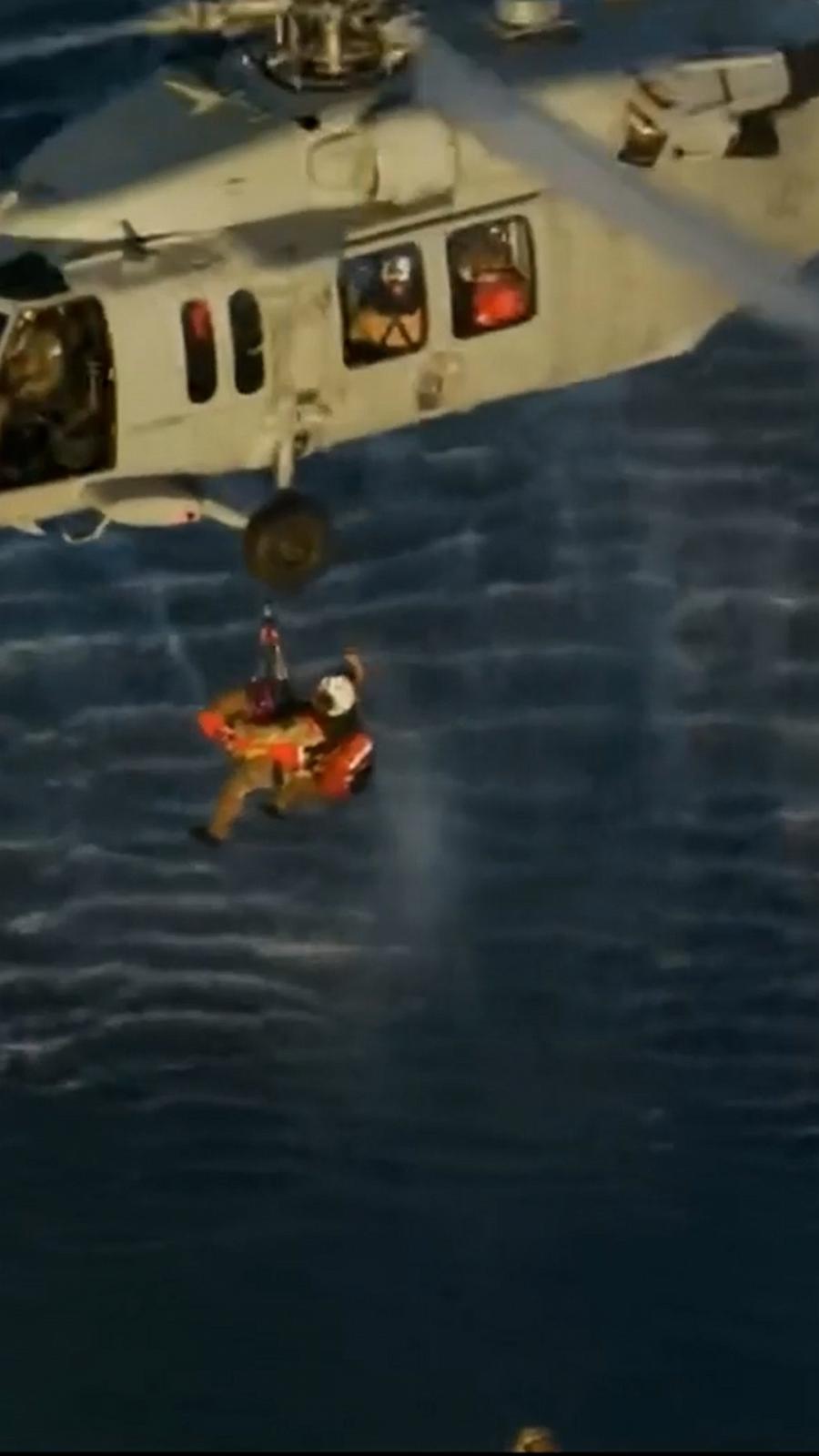 Artemis II astronauts get hoisted up by Navy helicopters after exiting Orion capsule