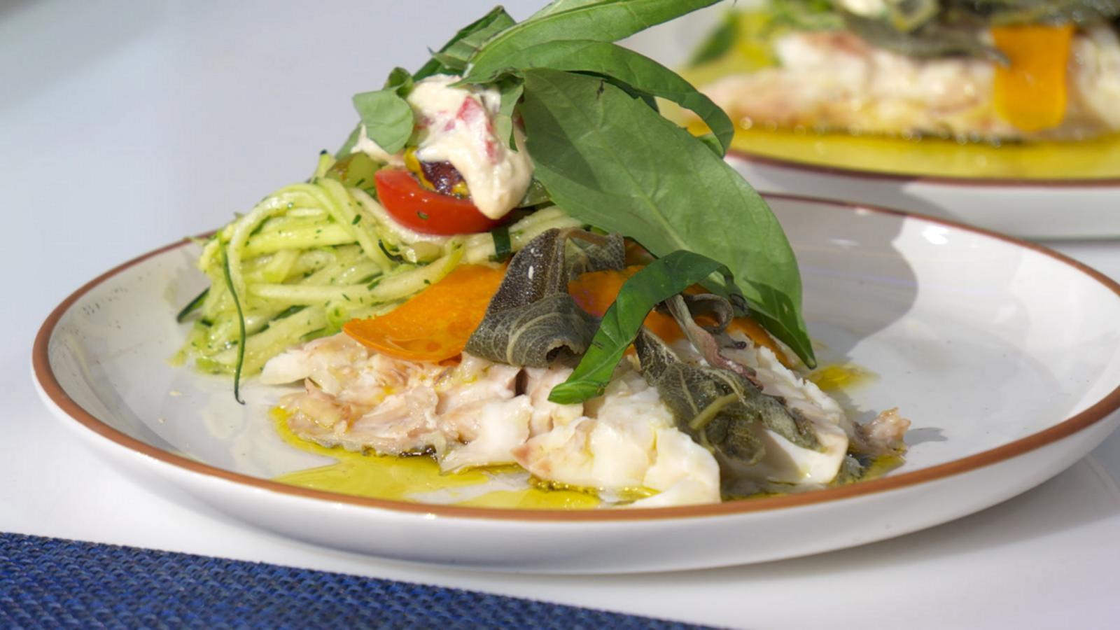 Ani joins “GMA” live to show viewers how to make recipes including a zucchini salad and salt-crusted sea bass.
