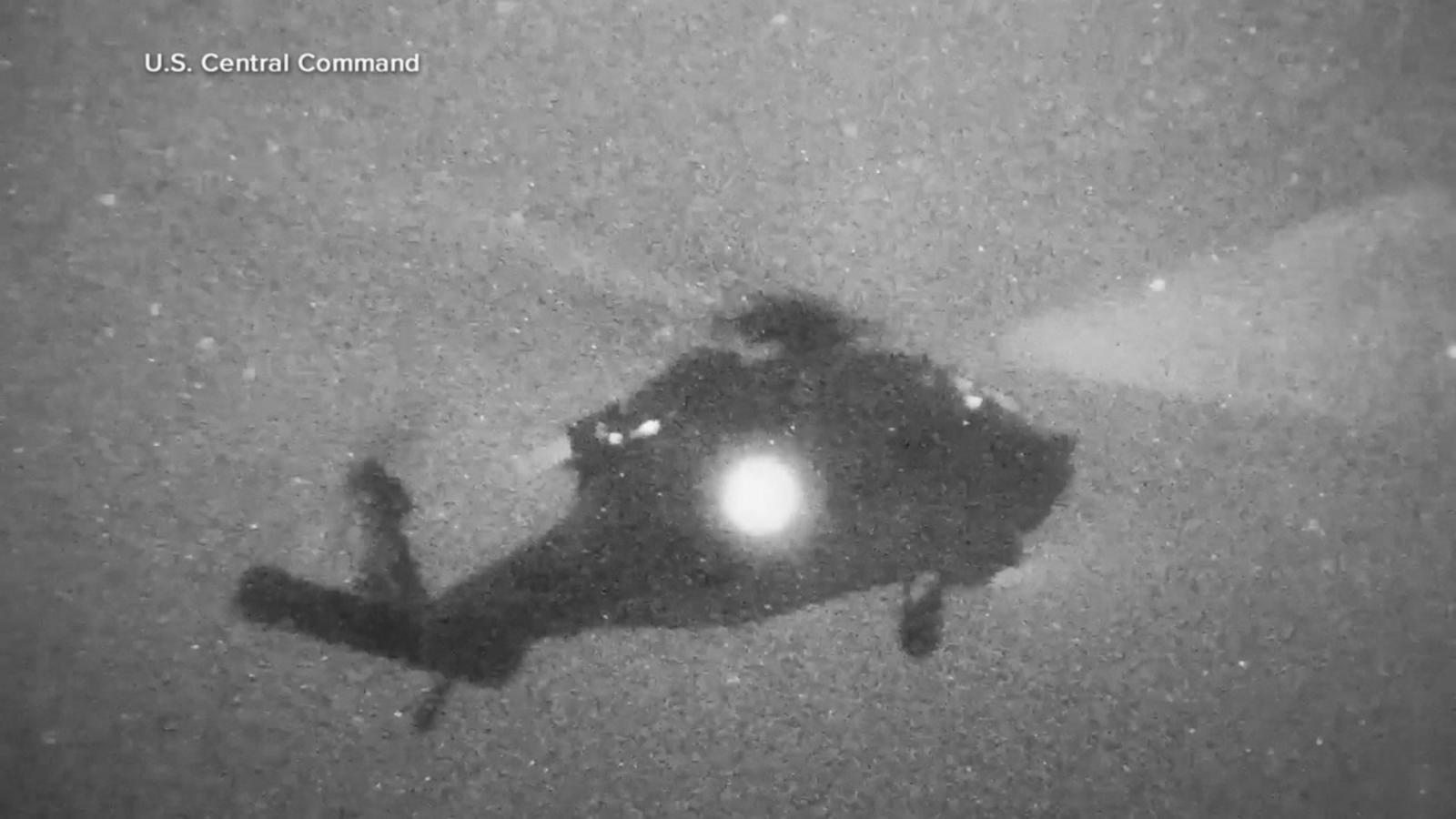 U.S. Central Command posted a video of the seizure of the Iran-flagged M/V Touska container ship, which it said was seized by helicopter-borne Marines on Sunday.