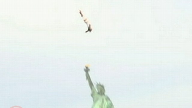 Red Bull World Series Cliff Diving 2013: Statue of Liberty Dive By Daredevil from Helicopter
