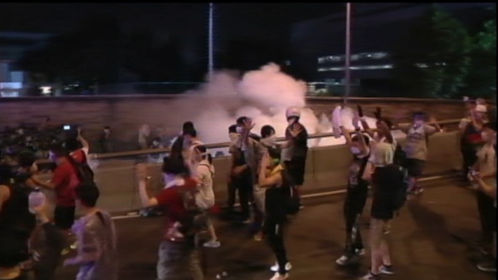 Pro-Democracy Protesters Face Tear Gas in Hong Kong
