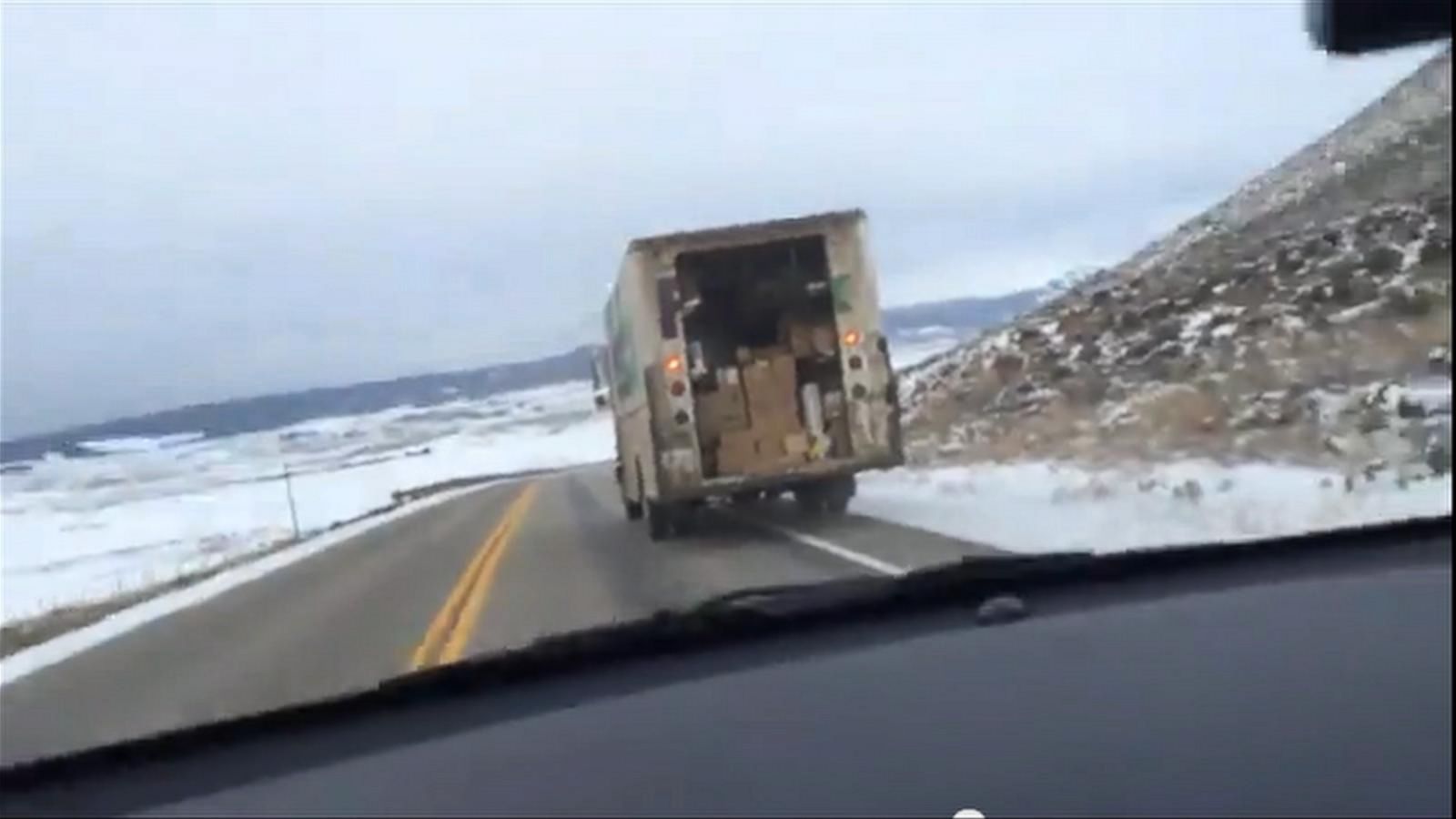 VIDEO: A family in Colorado swerved to avoid boxes and alerted the driver that his back door was wide open.