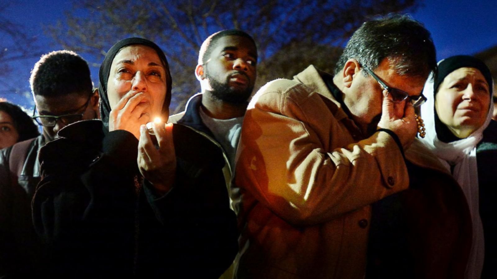 More than 5,000 gather from different faiths to mourn and pay respects to three students killed.