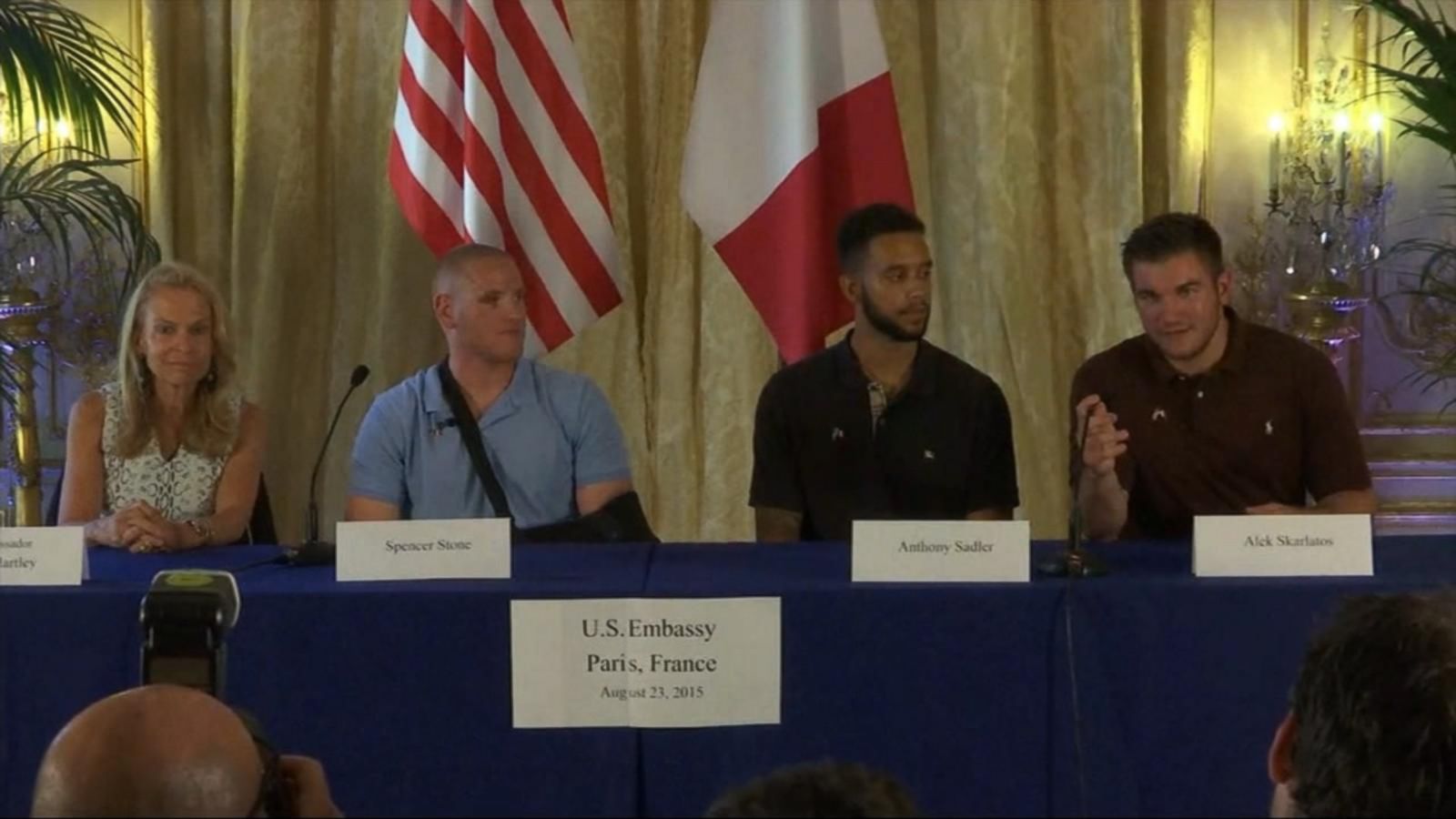 VIDEO: French authorities say three childhood friends from California and a fourth civilian helped subdue an armed attacker.