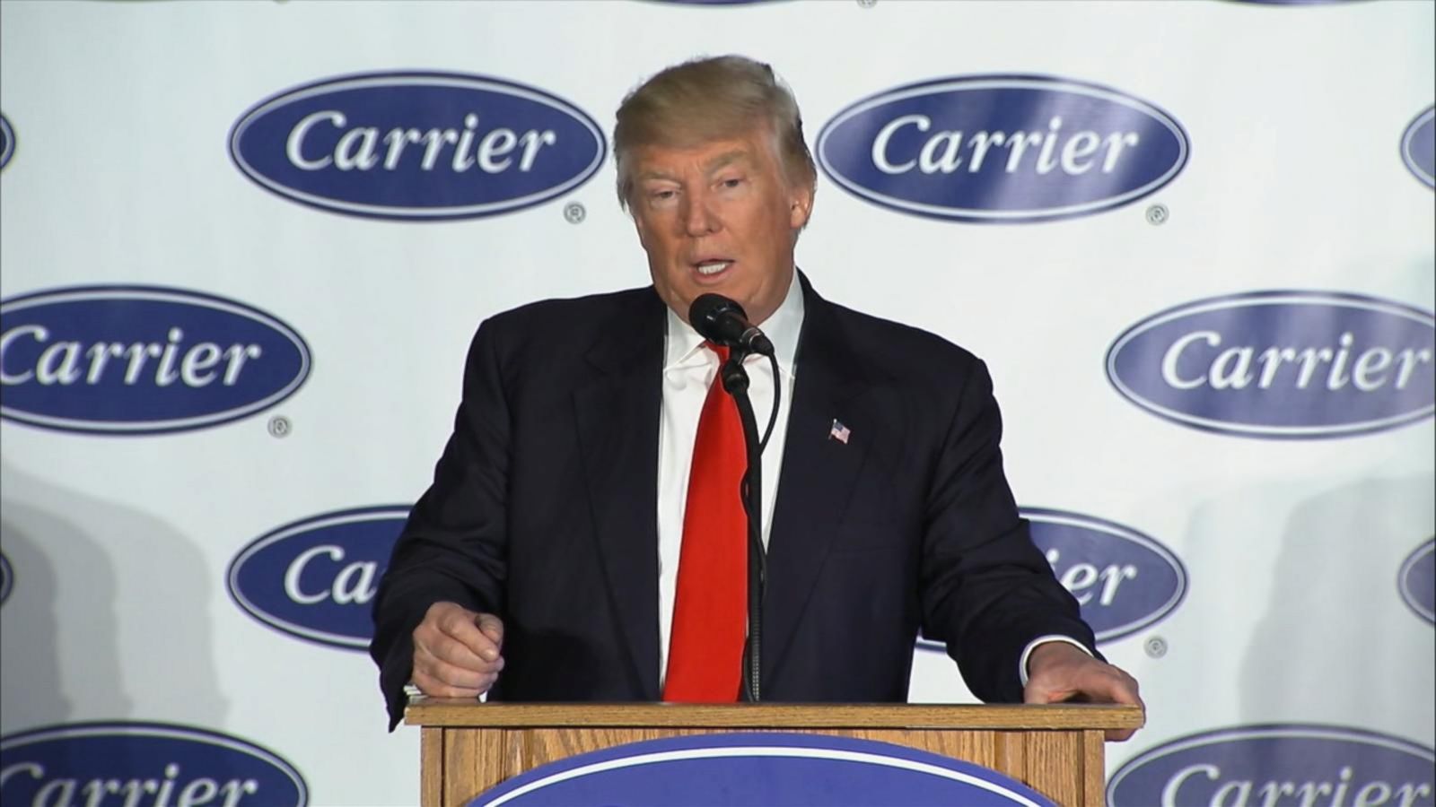 President-elect Trump spoke this afternoon at the Carrier manufacturing plant in Indianapolis.
