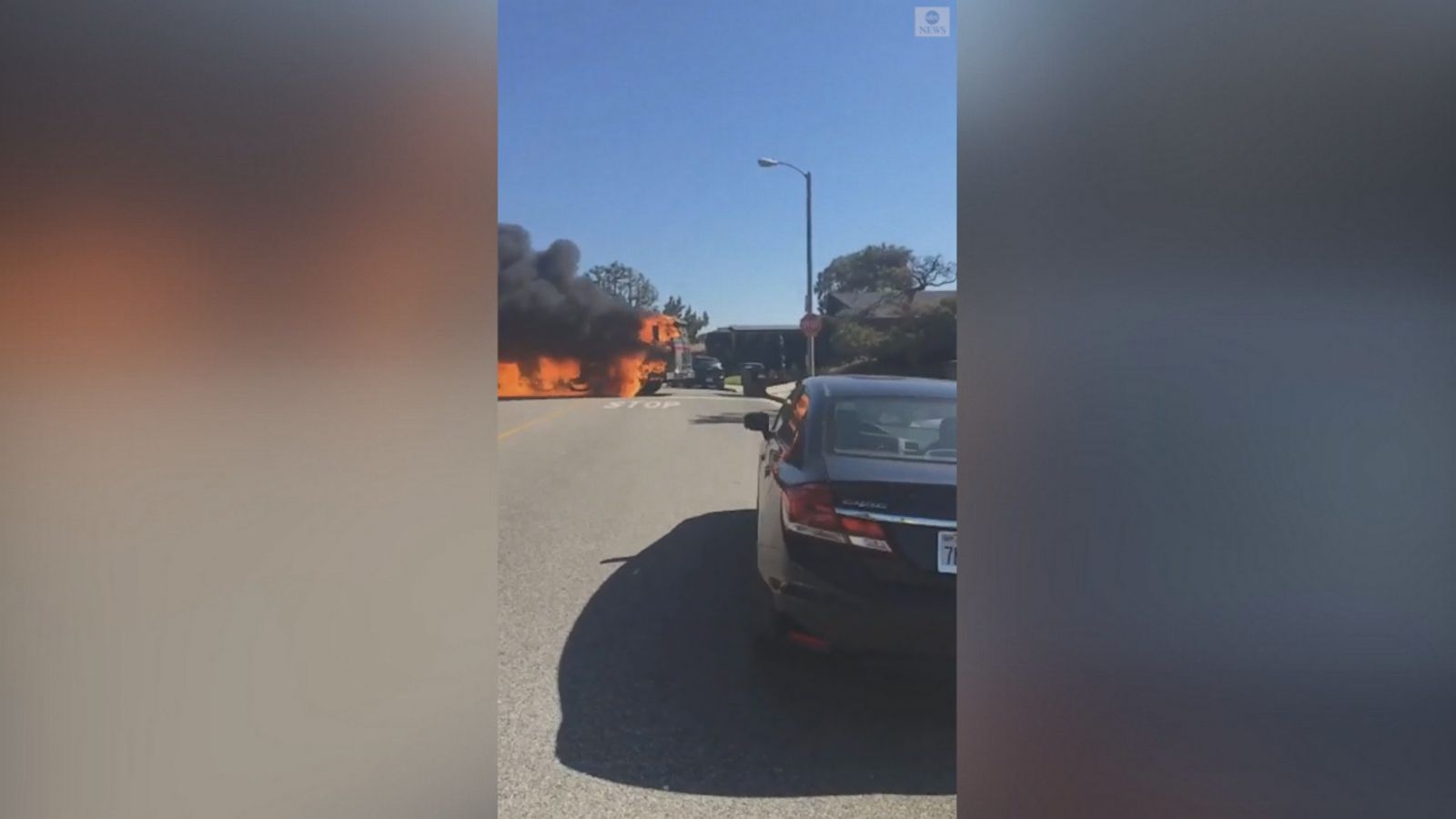 VIDEO: A garbage truck caught on fire, rolled down a hill and crashed into the front yard of a home in Monterey Park.