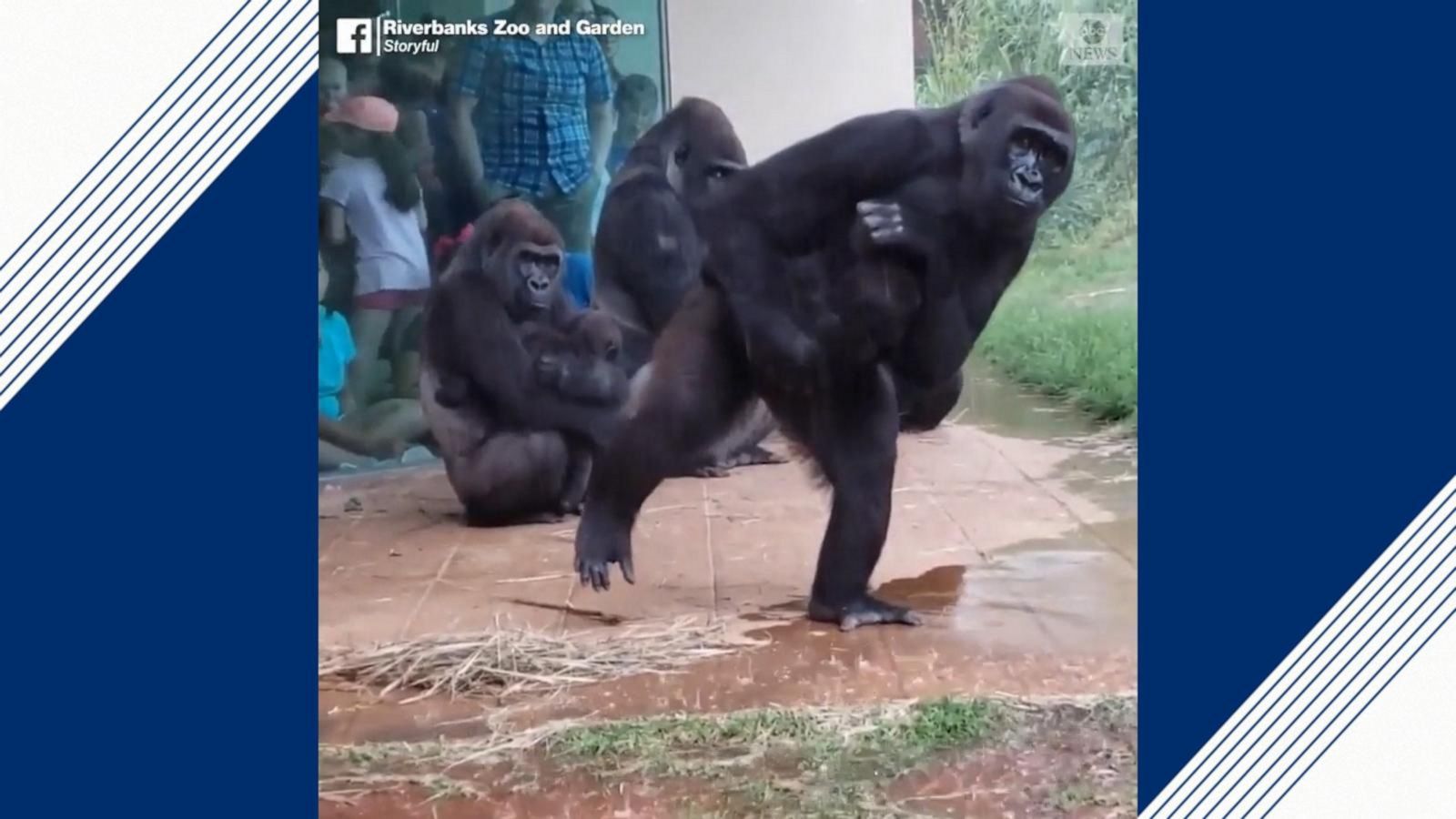 VIDEO: Gorillas try to avoid the rain