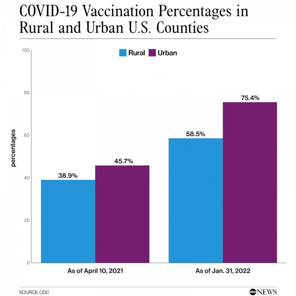By comparison, just 58.8% of those living in rural areas had been given at least an initial shot -- a nearly 17% difference.