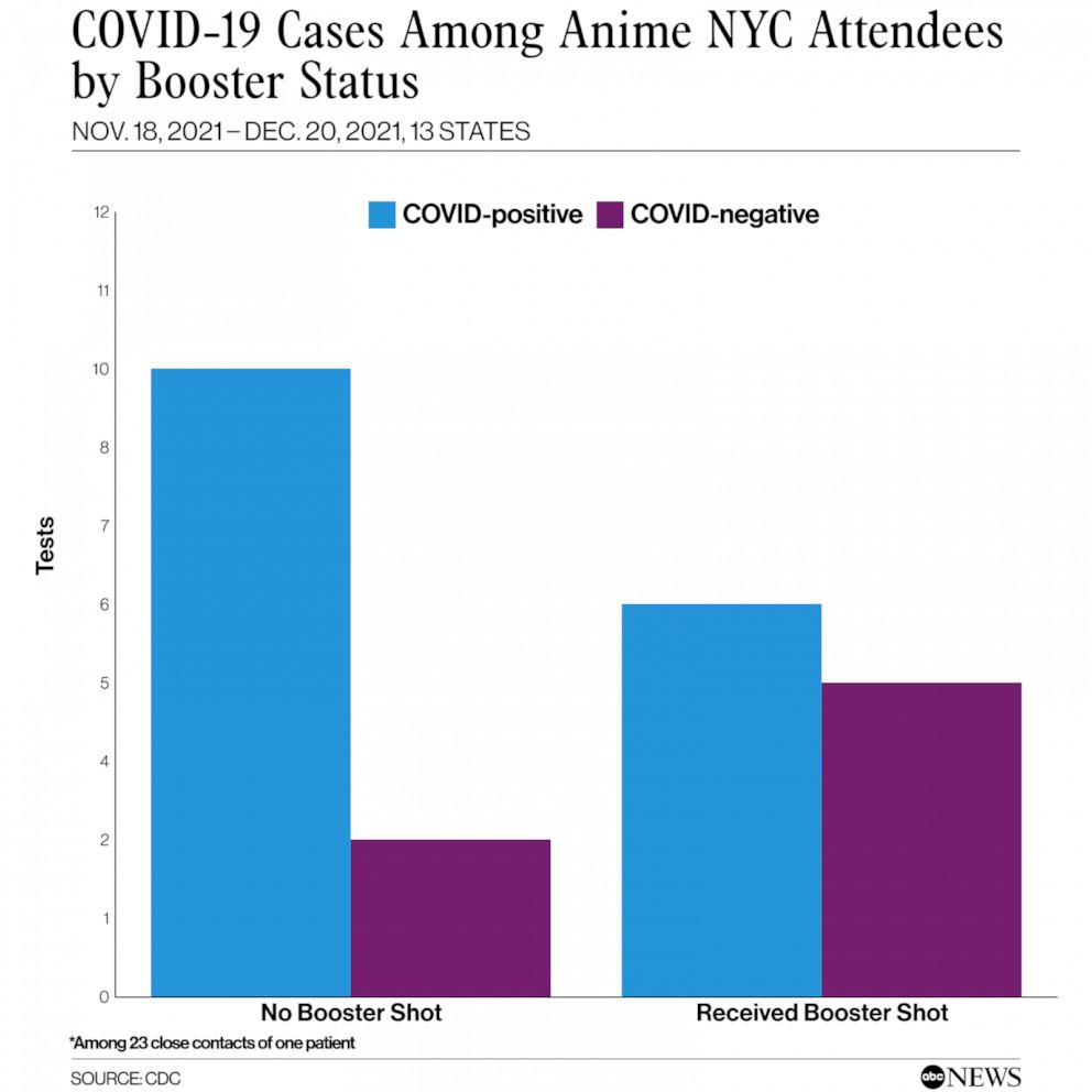All the contacts were fully vaccinated, but only 11 had received a booster dose before going to the convention, according to the report. The authors indicate that having a booster dose lowered the odds of testing positive for COVID-19.