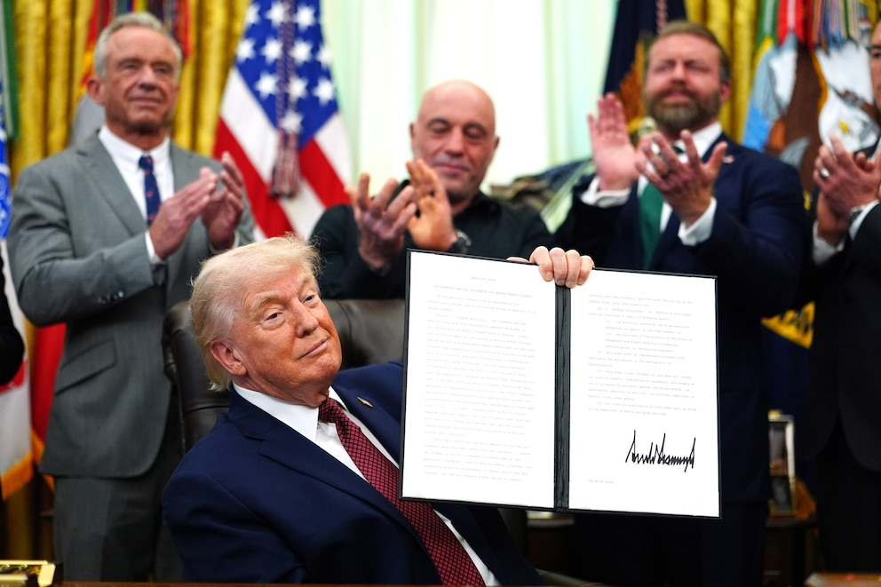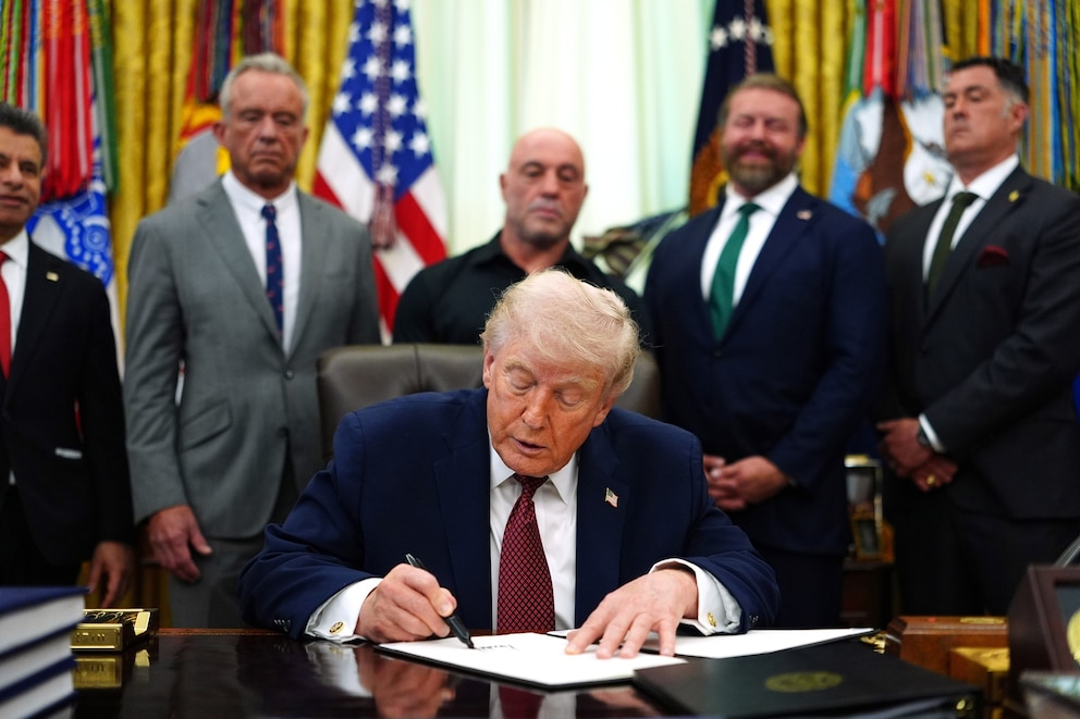 Trump was joined by Health and Human Services Secretary Robert F. Kennedy, Jr., Centers for Medicare & Medicaid Services Administrator Dr. Mehmet Oz, top health officials and the podcaster Joe Rogan in the Oval Office for the announcement.